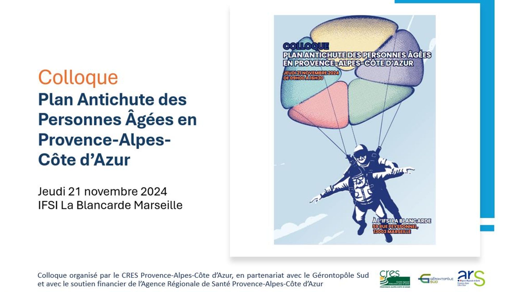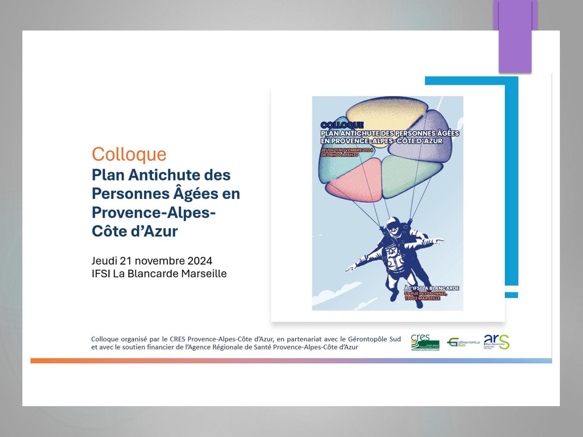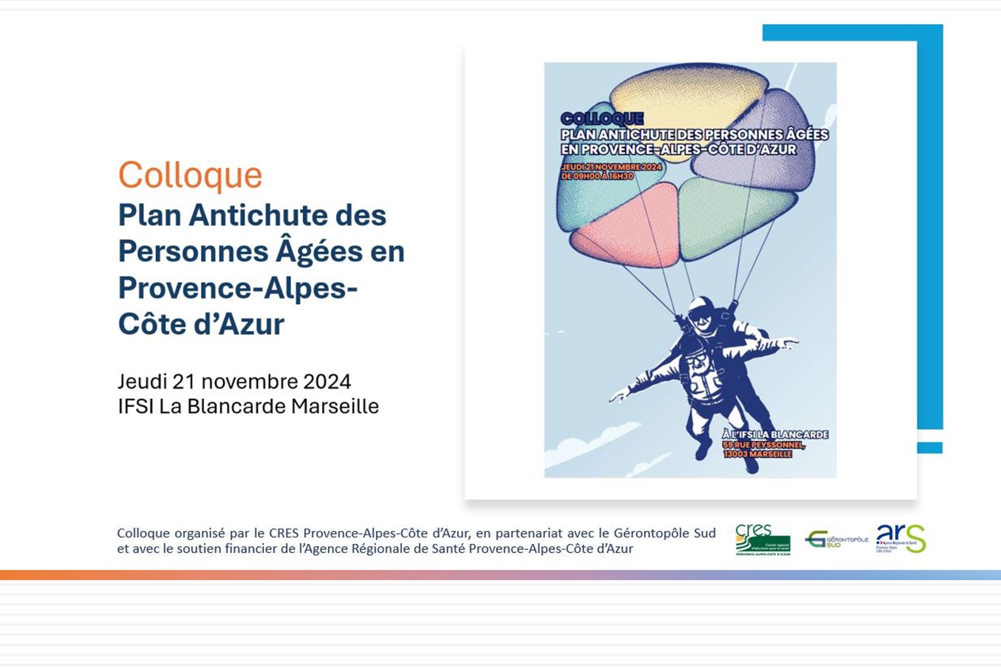 Le CRES et le Gérontopôle Sud, en partenariat avec l'ARS PACA, ont organisé le 21 novembre 2024 un colloque régional sur le Plan antichute des personnes âgées en Provence-Alpes-Côte d’Azur à Marseille.